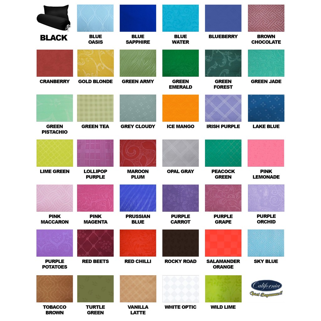 PART 1 bisa di klik di sini (atau chat admin kami):https://shopee.co.id/product/8108986/6673780131/1 KG MUAT 6 PCSMERK: California (Sepabrik dengan produsen Sprei & Bed Cover MY LOVE)HARGA ADALAH UNTUK 1 PCS SARUNG BANTAL + 1 PCS SARUNG GULINGUKURAN:sarung bantal: 50x70 cmsarung guling: 110x75 cmMohon perhatiannya:1. Gambar adalah patokan untuk warna produk2. Produk ini terdapat emboss motif pada permukaan kainnya3. Emboss motif bisa berbeda-beda tergantung produksi dari pabrik4. Penjual akan mengirimkan sesuai Variasi Warna yang di KLIK oleh pembeli5. Kami adalah selaku penjual / distributor resmi. Barang dijamin original / asli6. Barang kami terima sudah dalam keadaan disegel dan tidak bisa kami buka dulu untuk cek fisik ataupun kelengkapan barang7. Sarung Bantal, Sarung guling dikemas dan dilipat oleh pihak pabrik. Pihak Toko tidak memeriksa isi sebelum dikirim, apabila ada kekurangan atau cacat merupakan tanggung jawab pihak pabrik.8. Apabila ada kekurangan pada isi paket sprei, bisa menginformasikan ke kami untuk dibantu dikirimkan pada pesanan berikutnya9. Seandainya terjadi kejadian pada poin 6, maka ongkir PP Ditanggung Pembeli dan Pembeli Wajib Menyertakan Video UNBOXING. Jika hanya foto saja maka klaim akan kami anggap tidak sah. Mohon maaf.10. Barang ini adalah apa adanya (as is), tidak ada garansi toko (no warranty)11. Untuk kesesuaian stok dan pengiriman, serta kenyamanan bersama: Tidak diperkenankan meminta ganti ukuran / motif apabila sudah melakukan pemesanan12. Jika minta dikirim warna lain via chat / pesan untuk penjual, maka kami akan konfirmasi lewat chat13. Jika Tidak dibalas dalam 1x6 jam, Maka PENJUAL BERHAK MENGIRIMKAN BARANG SESUAI VARIASI WARNA YANG DIPESAN14. Pembeli yang membeli barang ini, kami anggap telah membaca dan menyetujui disclaimer yang tertulis pada deskripsi produk ini.15. Terimakasih telah membaca dan memahami isi disclaimer