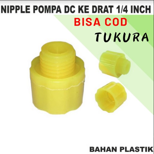 Name: Nipple Pompa Dc Drat 18mm Ke Drat 1/4 Inch - Plastik Kuning