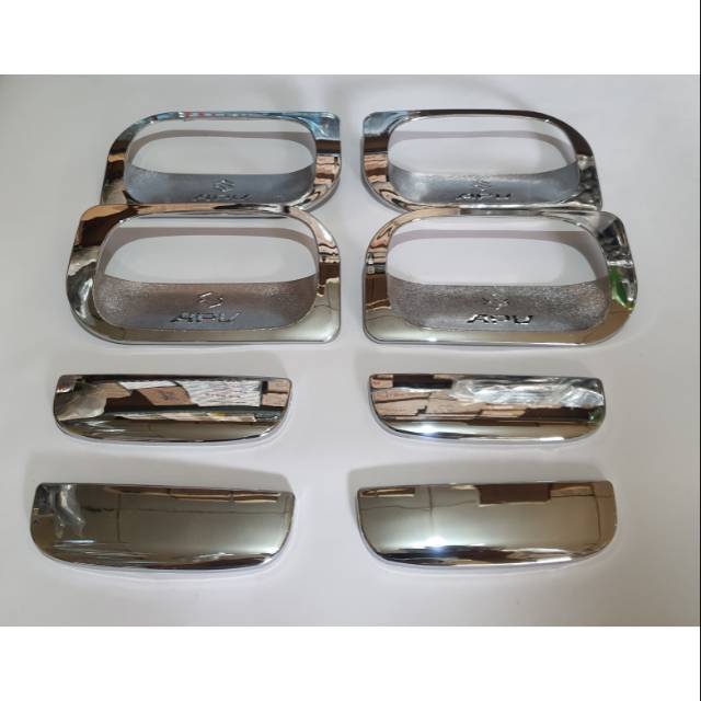Foto asli.Outer dan Handle pintu khusus untuk mobil:apv lama dan apv arenaSudah set 8 pcs.Warna: crom.Kualitas bagus.Sudah dilengkapi dengan perekatPemasangan mudah tinggal lap permukaan dan tempel saja.Harga sudah untuk 1 set sesuai handle pintu mob